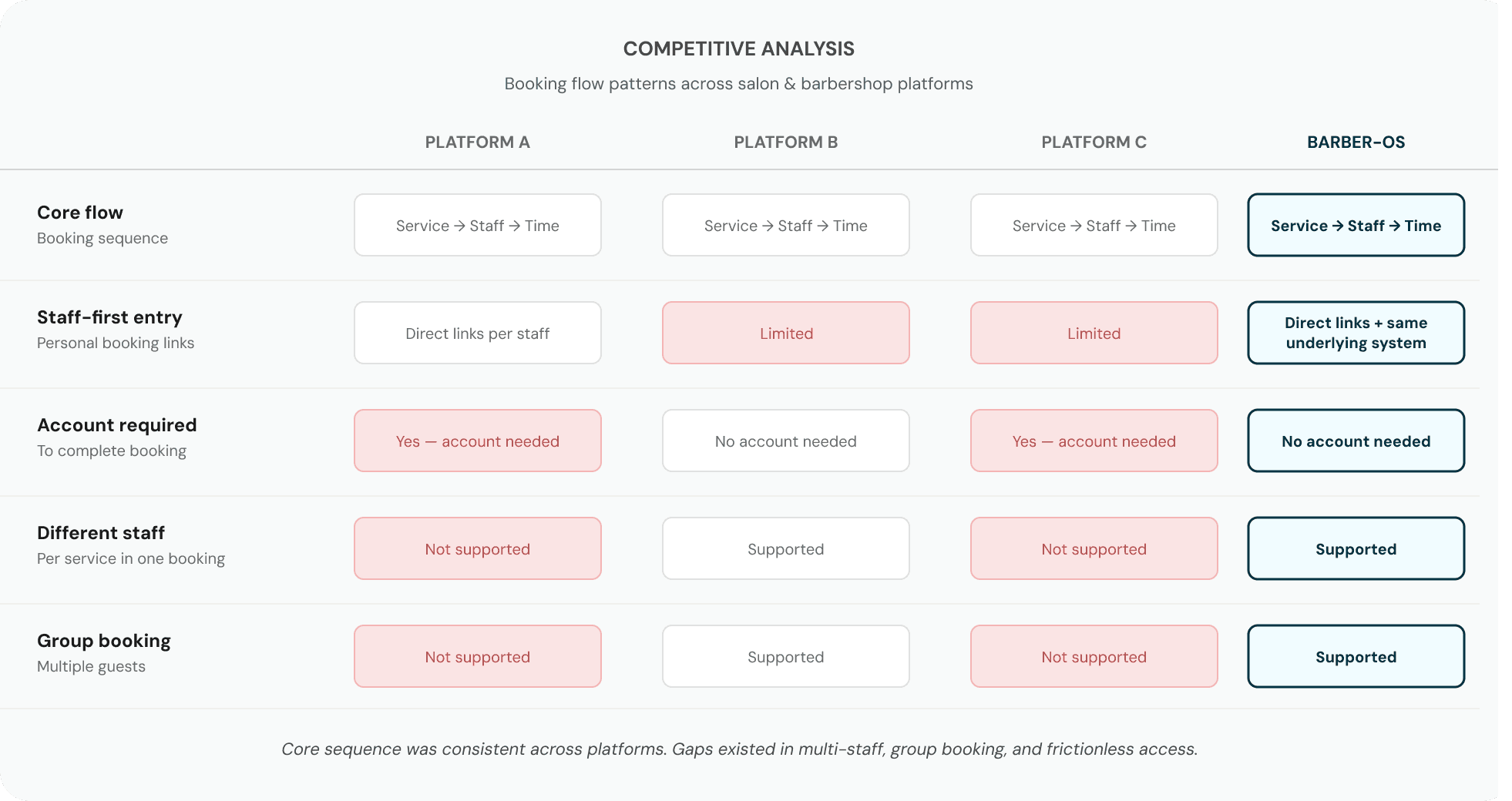 On the surface, booking seems simple: pick a service, pick a person, pick a time. But through competitive research and beta tester feedback, the complexity became clear.