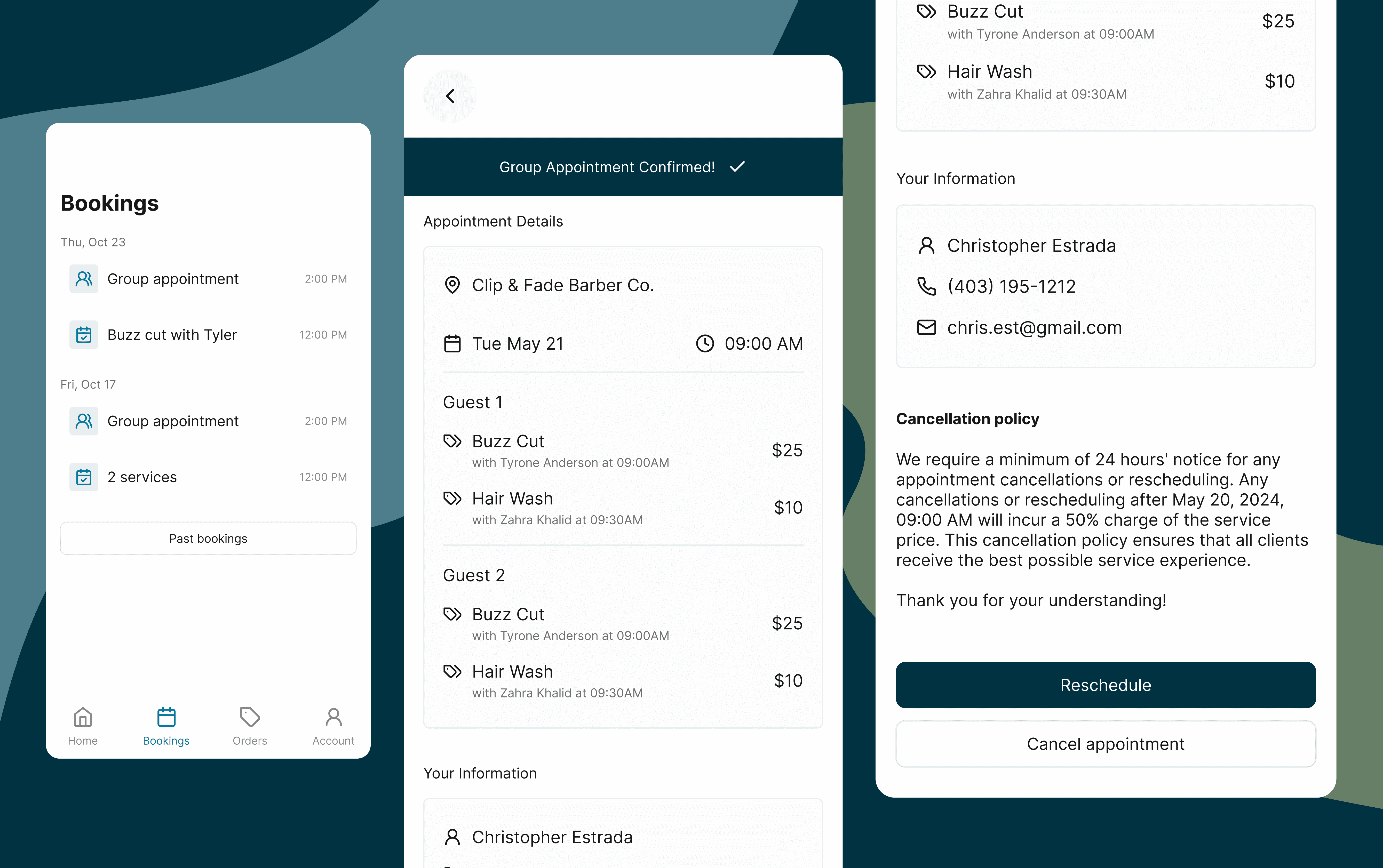I'd designed a full post-booking management flow — customers could modify services, change staff, or reschedule. Development resources meant we shipped view-and-cancel only. The design work informed future phases and clarified the minimum viable post-booking experience.